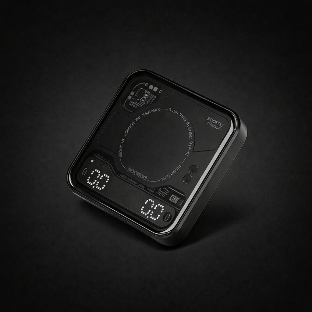 The slim 80 mm x 80 mm design fits neatly on smaller drip trays, making it ideal for espresso machines where space is tight. Built from 6063 aluminium alloy, AF-coated tempered glass, and food-grade silicone, it feels solid, refined, and ready for daily use. Add in IPX4 splash resistance, a grippy silicone mat, and up to 24 hours of battery life, and you’ve got a scale that’s made to keep up wherever the brew session goes.